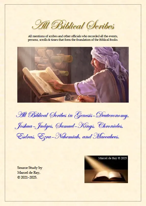 A Review of all the scribes given in the sacred Text of the Bible. Per book with tables for each. Extra: a deep investigation by German experts into the origination of the main corpus of biblical manuscripts, the LXX + MT. (OT)